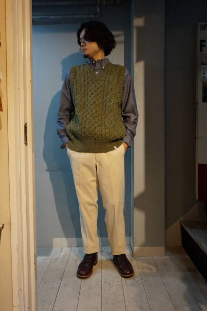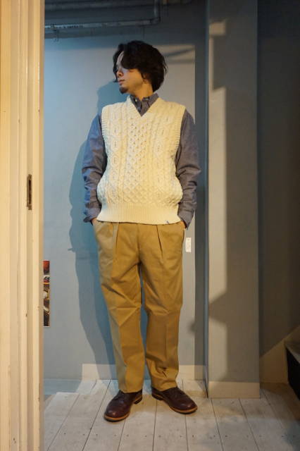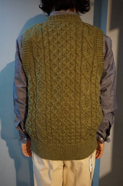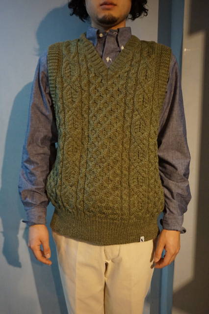 古くからアイルランド西岸のアラン諸島で編まれてきたアランニットがベースのベストは