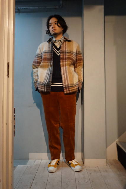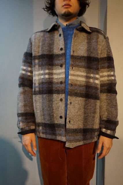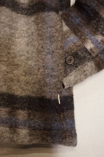 大き目のチェック柄にシャギーのような風合い(起毛した素材)が見た目も、着ても温かみを増し、ジャケット代わりとしても
